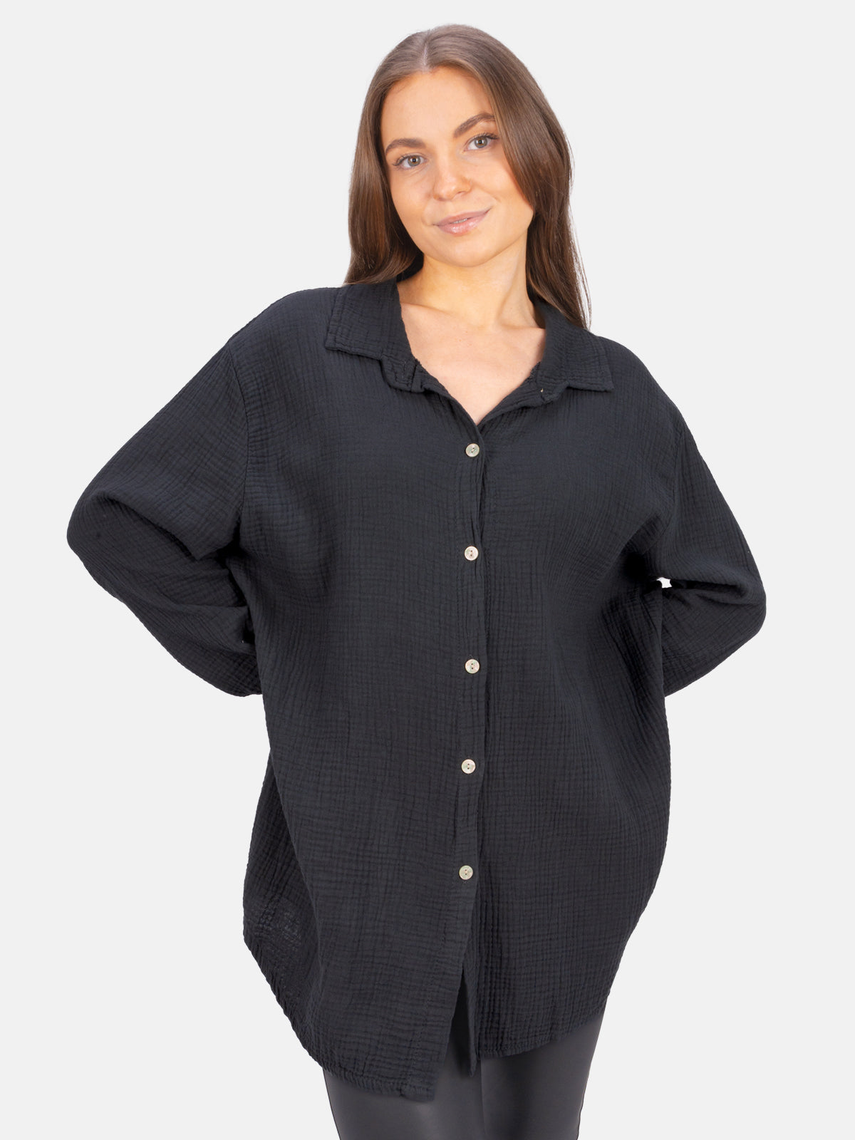 Lange Musselin Hemdbluse mit Knöpfen - schwarz - Becka