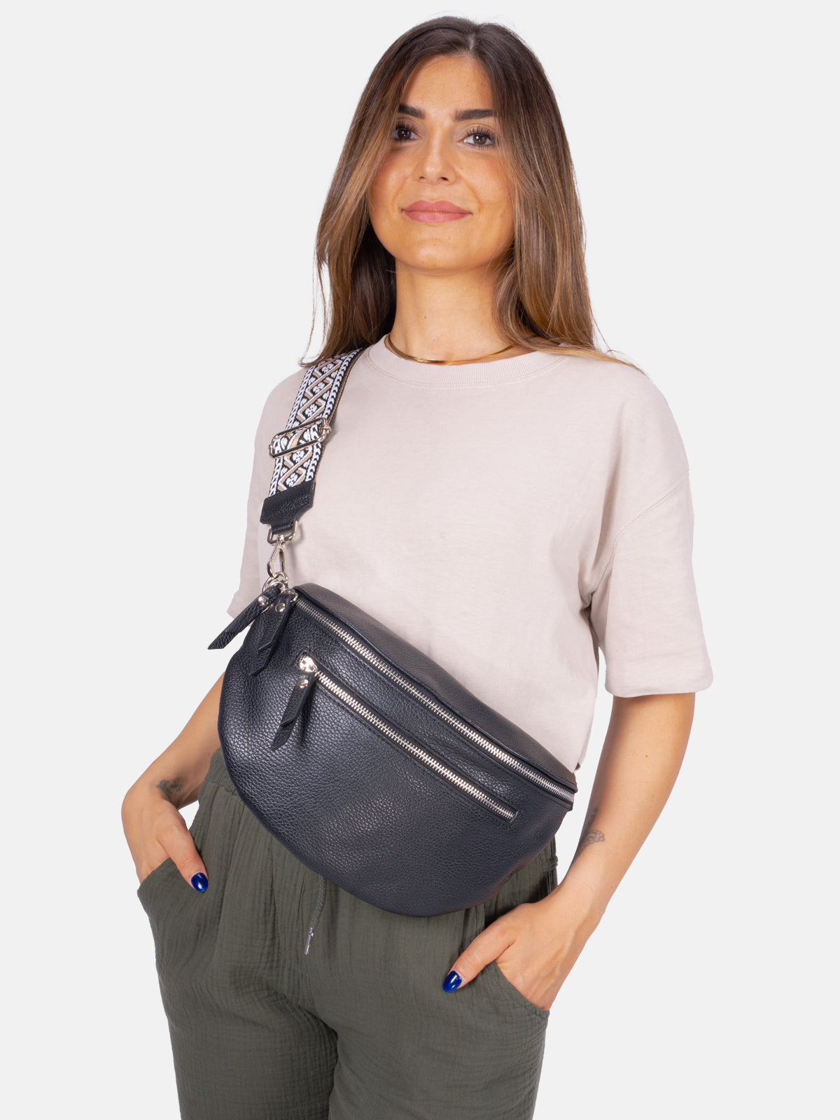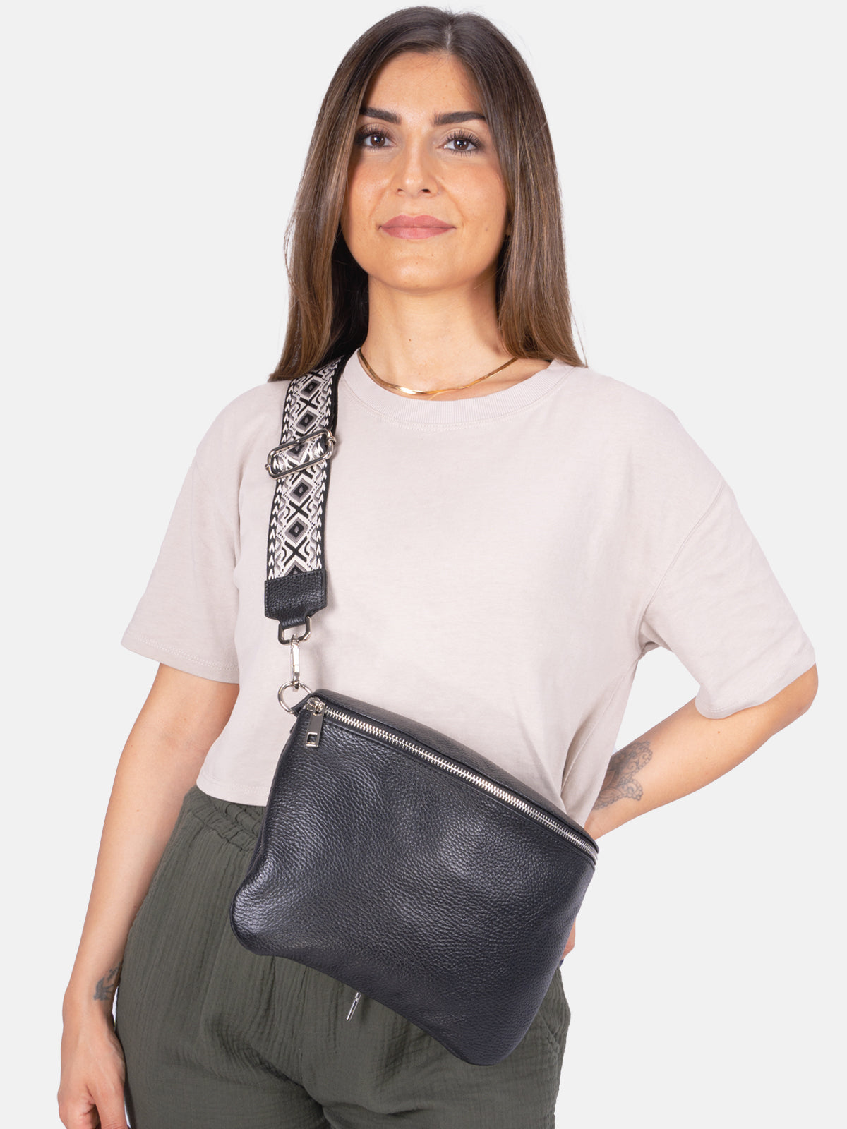 Mittelgroße Crossbody Gürteltasche aus 100% Leder - schwarz - Helen