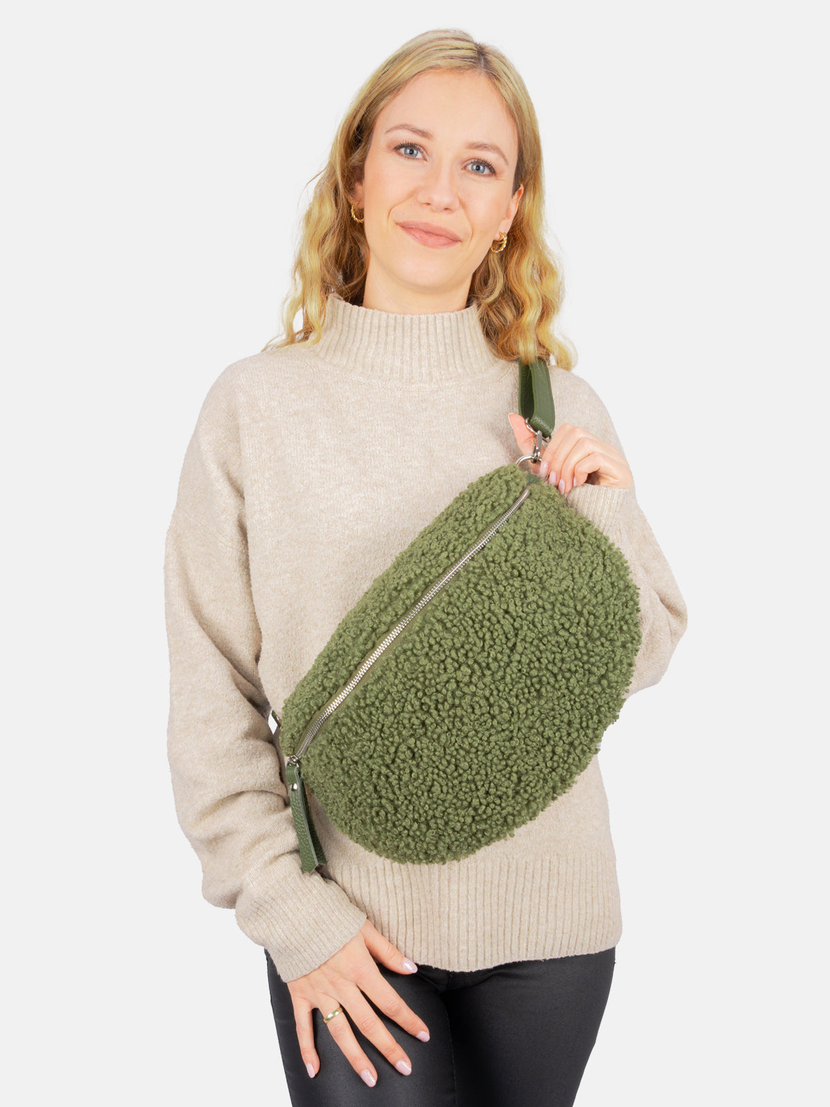 Mittelgroße Crossbody Gürteltasche aus 100% Leder - olivgrün - Helen