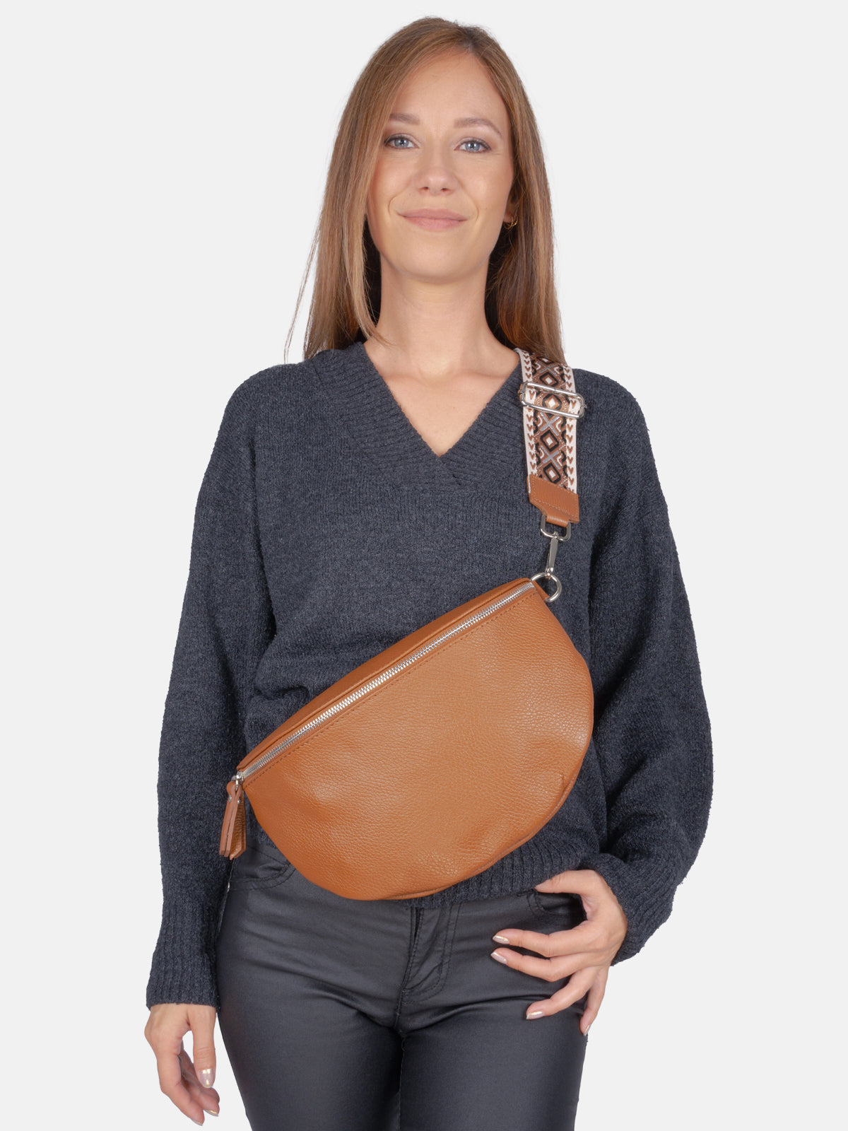 Mittelgroße Crossbody Gürteltasche aus 100% Leder - cognac - Helen