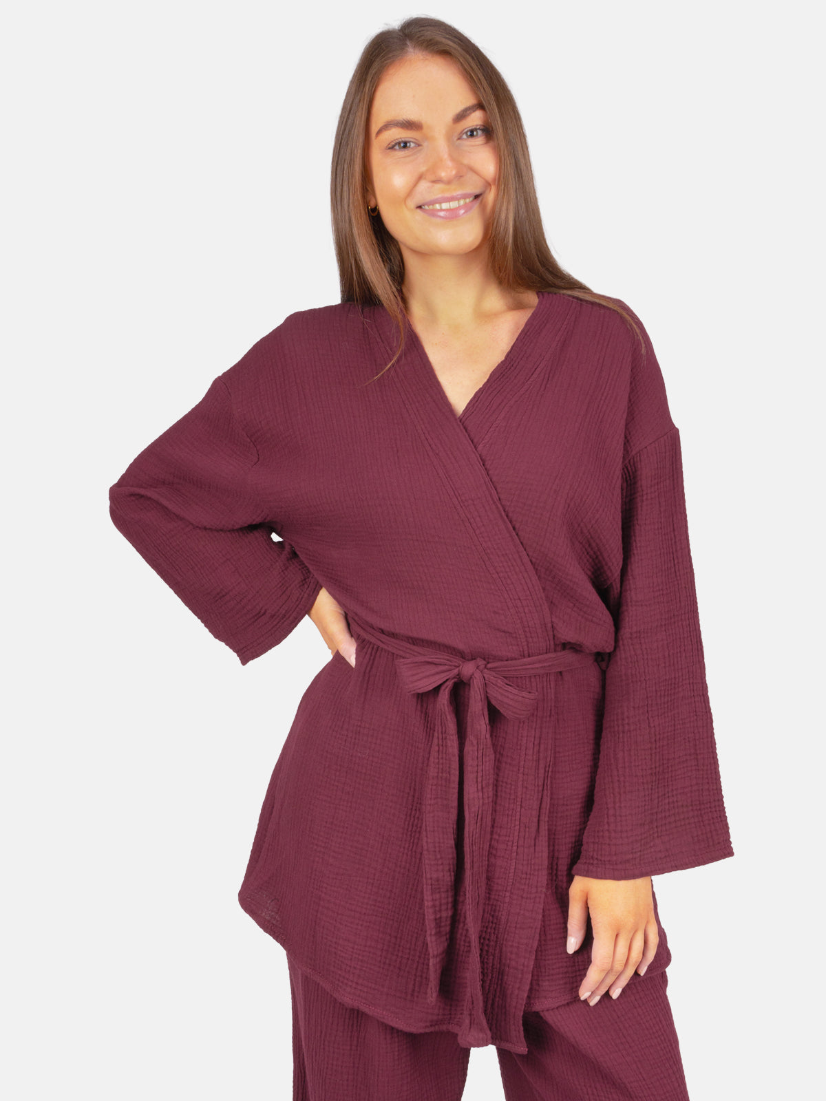 Kurze Musselin Hemdbluse mit Knöpfen - bordeaux - Sasha