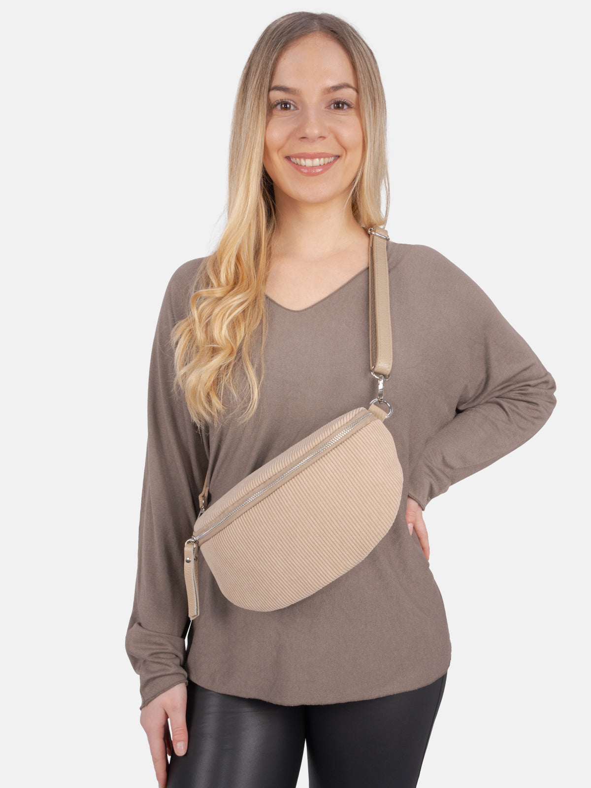 Mittelgroße Crossbody Gürteltasche aus 100% Leder - taupe - Helen