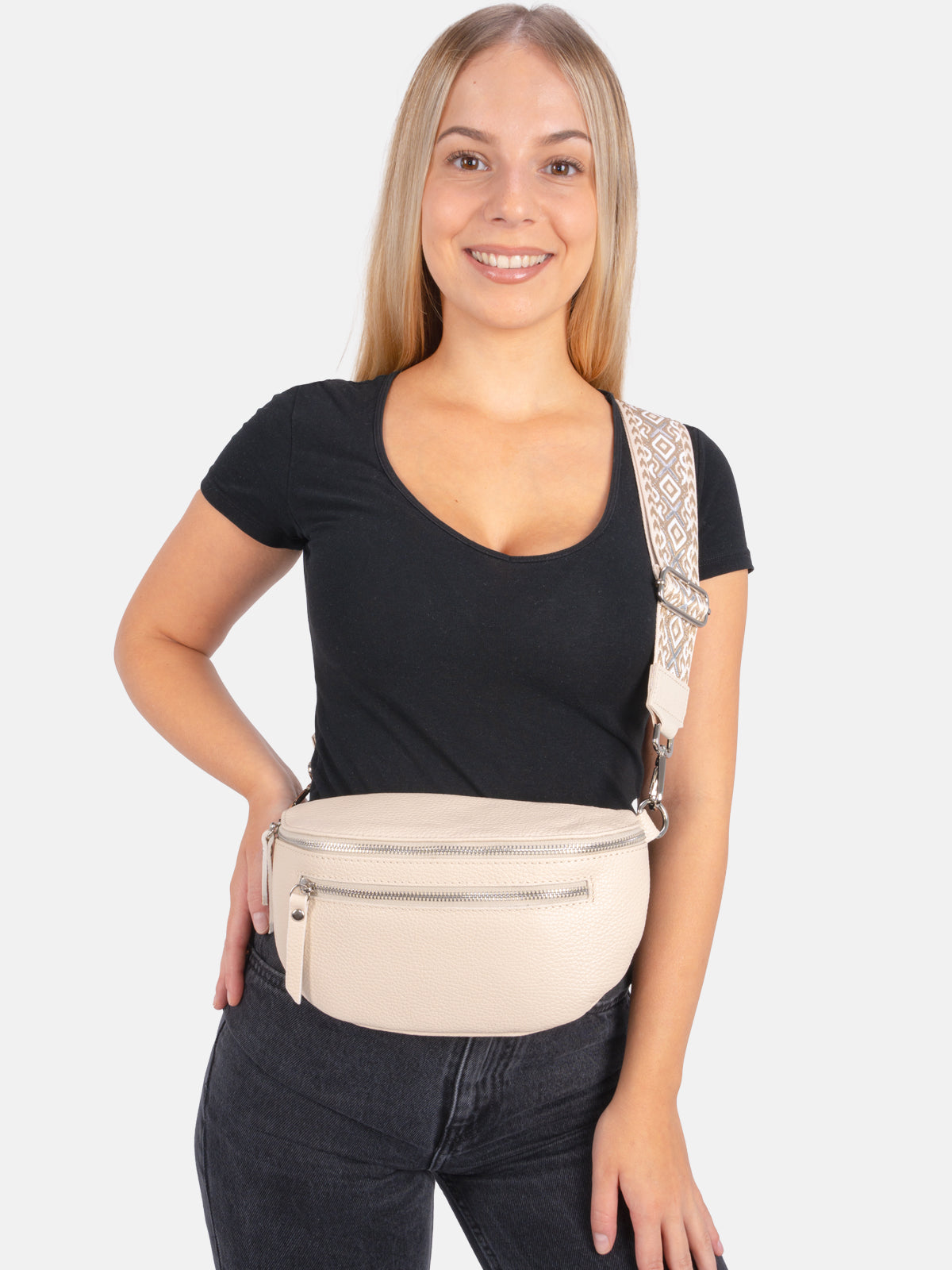 Mittelgroße Crossbody Gürteltasche aus 100% Leder - creme 2 - Helen FF