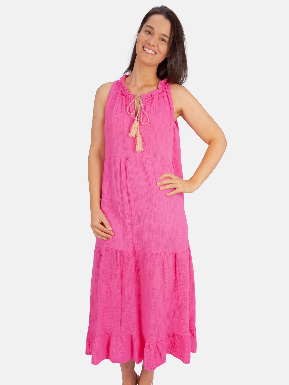 Lange Musselin Hemdbluse mit Knöpfen - pink - Becka