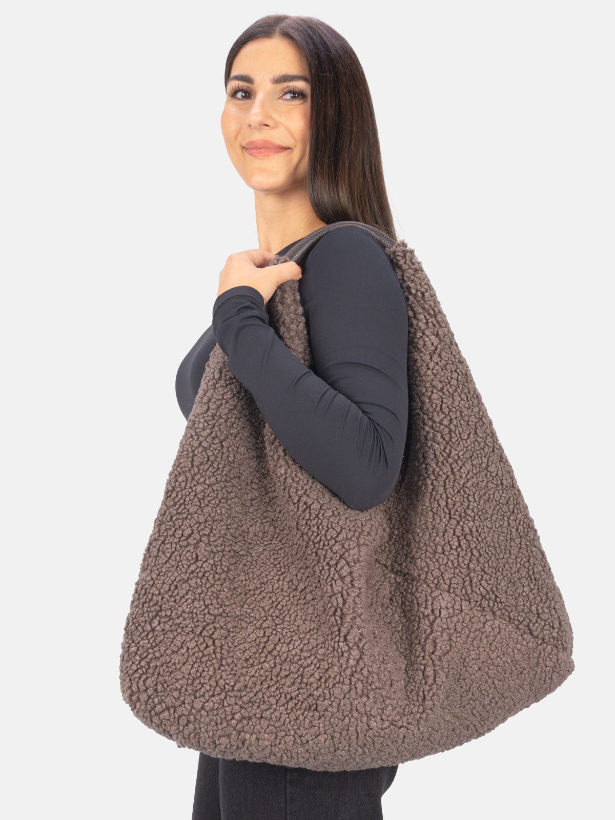 Stofftasche Crossbody Bag Size L - dark taupe - Fluffy