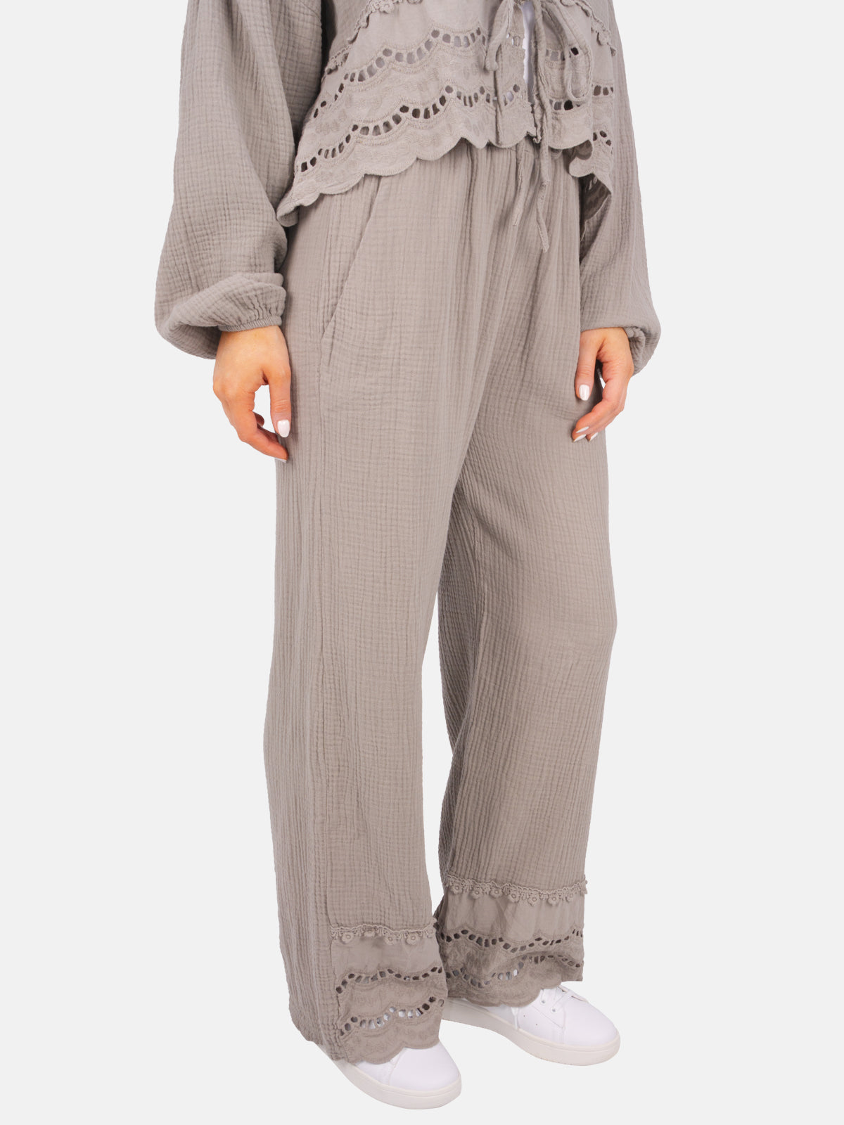 Musselin Bluse mit Lockstickerei zum Binden - Laura